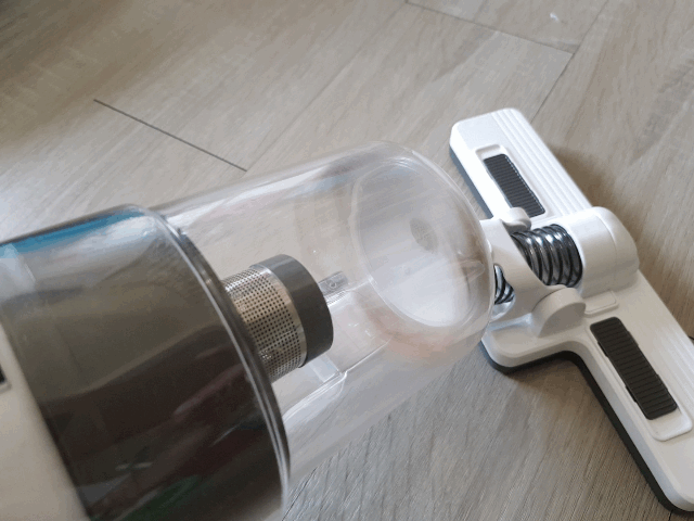而清掃後的集塵桶清潔也相當簡易~ 只需按下前端的按鈕即可取下!