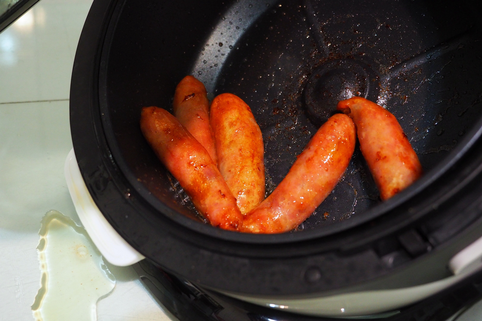 香腸應該是家家戶戶很常見的一道餐點~ 不過常常容易一個疏忽就某一面焦黑了!