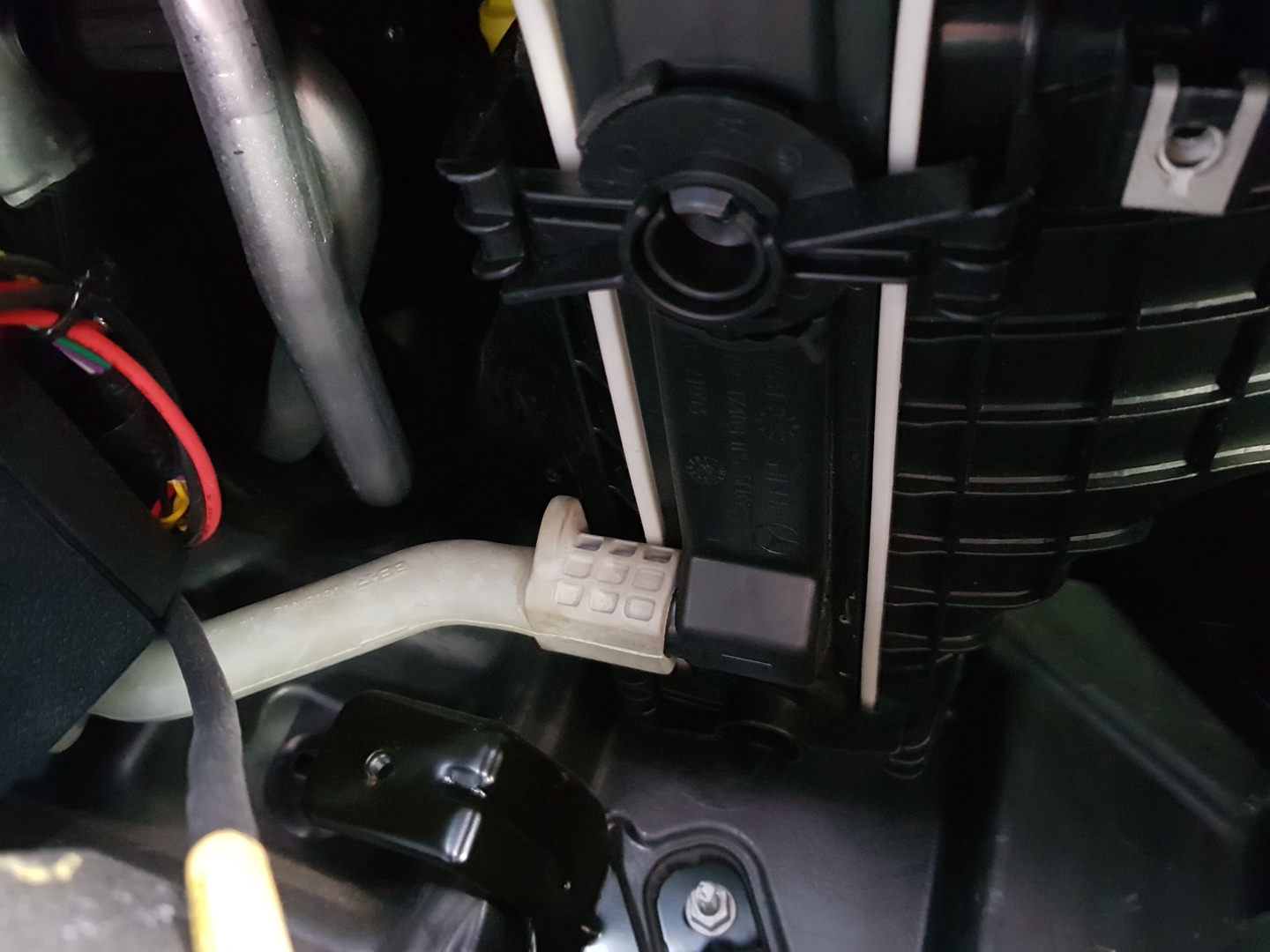 需要先拆下副駕駛座腿部保險絲座上方的護蓋!